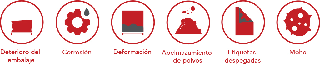 Los productos y sus embalajes corren el riesgo de daños causados por humedades durante el transporte que pueden que pueden afectar directamente a la carga y generar reclamaciones del cliente. Algunos de estos problemas pueden incluir corrosión, moho, grumos y deterioro del embalaje, incluyendo deformaciones y despegado de etiquetas.
