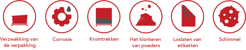 Producten en hun verpakking lopen het risico op schade door vocht tijdens het transport, wat kan leiden tot grote schade en claims van klanten. Problemen kunnen bestaan uit corrosie, schimmel, klonteren van poeders en de aantasting van verpakkingen, waaronder kromtrekken en het loslaten van etiketten.